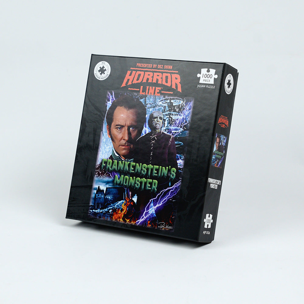 This captivating jigsaw puzzle features the spine-chilling artwork by Paul Watts, taken from Hammer Films’ 1964 chiller The Evil of Frankenstein. First showcased in the celebrated US magazine Little Shoppe of Horrors, this jaw-dropping image will thrill horror aficionados and haunt their puzzle nights!