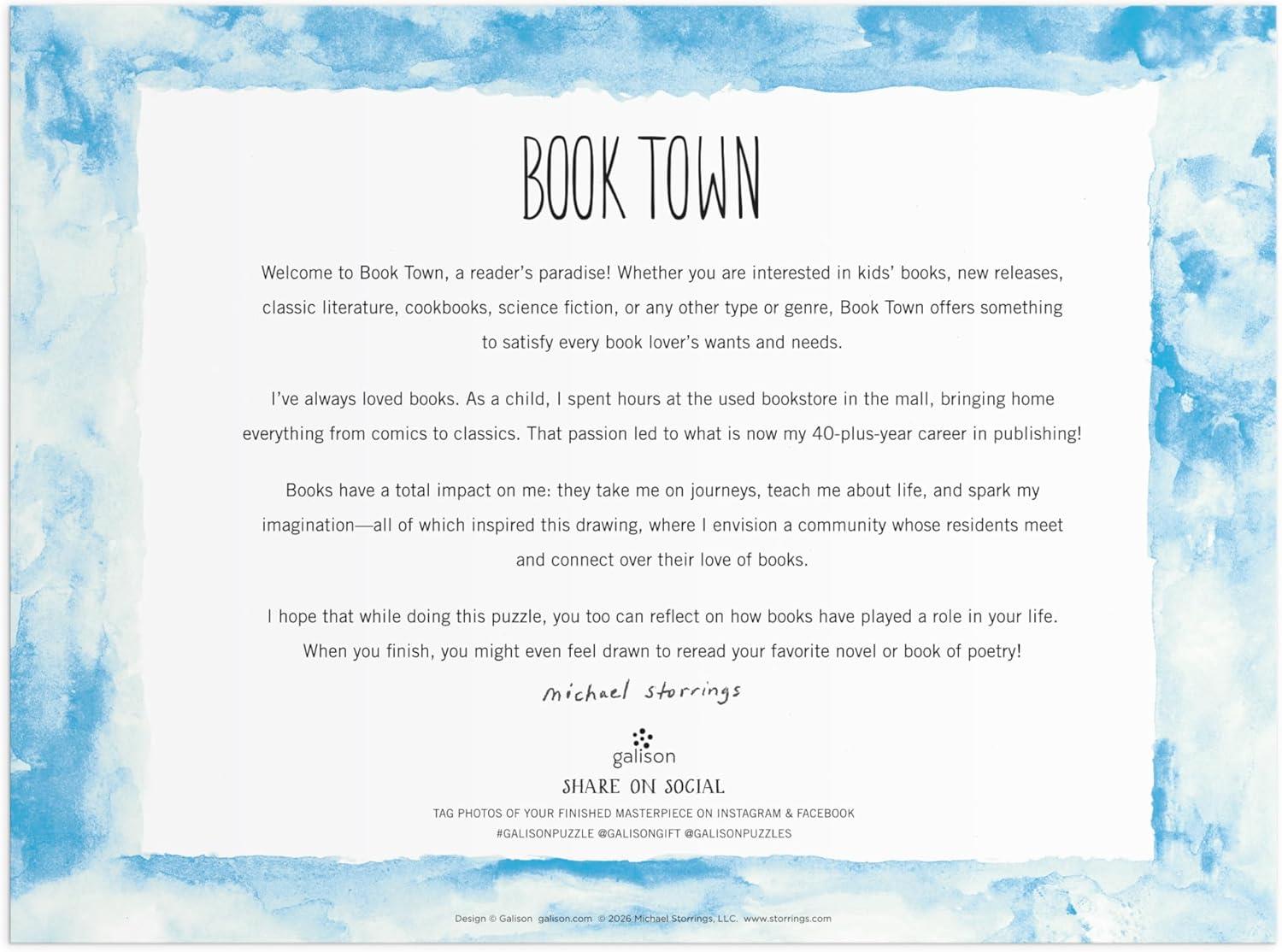 This 1000 piece puzzle by Michael Storrings invites you into a book-filled town where every street tells a story.