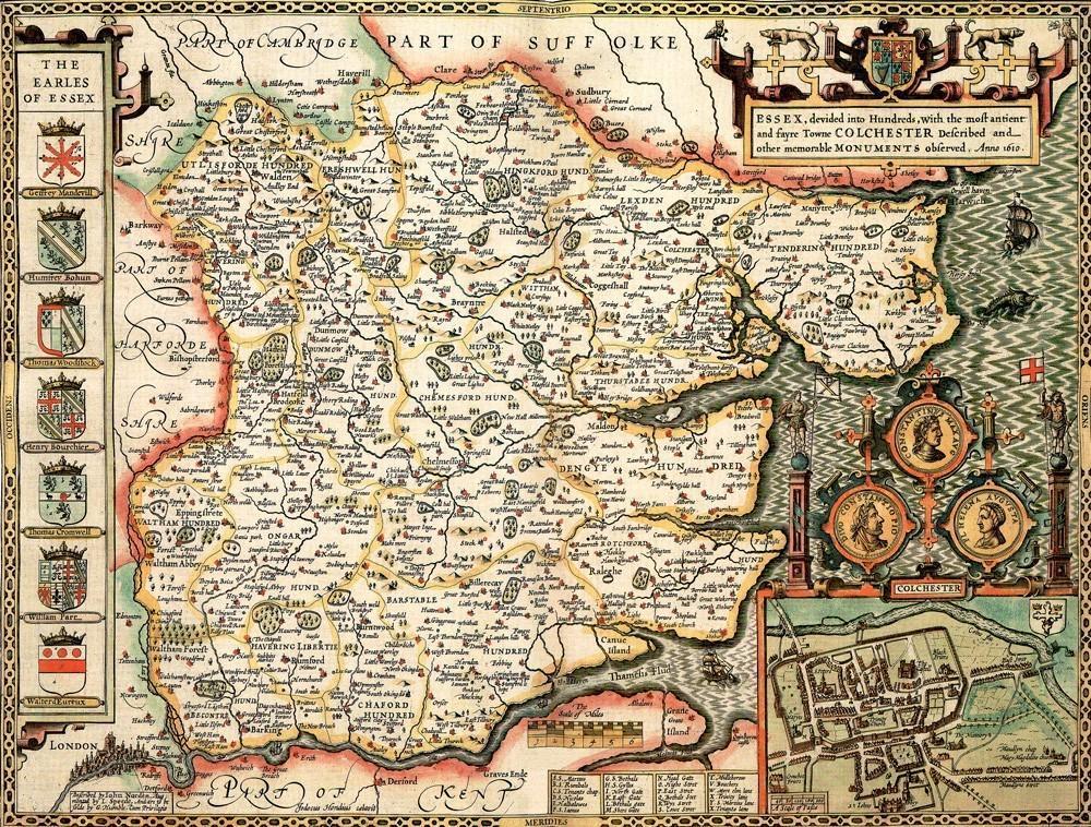 Dies ist ein hervorragendes Puzzle, das die Grafschaft Essex um das Jahr 1610 darstellt.