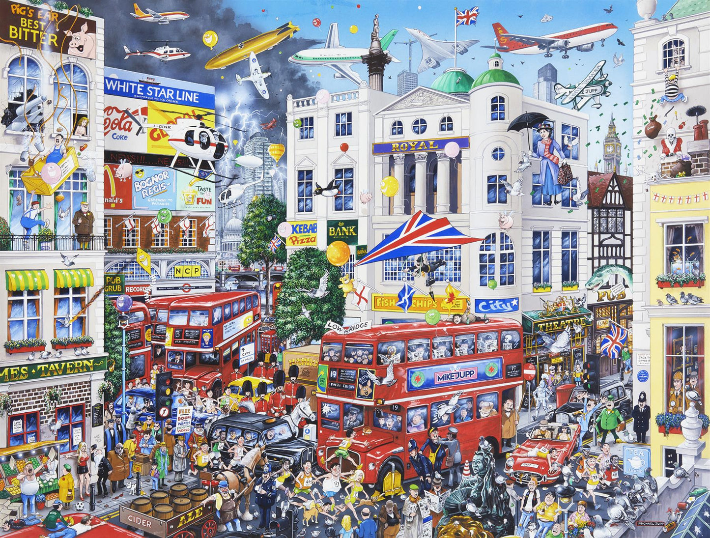 „I Love London“ ist ein unglaublich witziges 1000-Teile-Puzzle aus dem erstaunlichen Kopf von Mike Jupp.