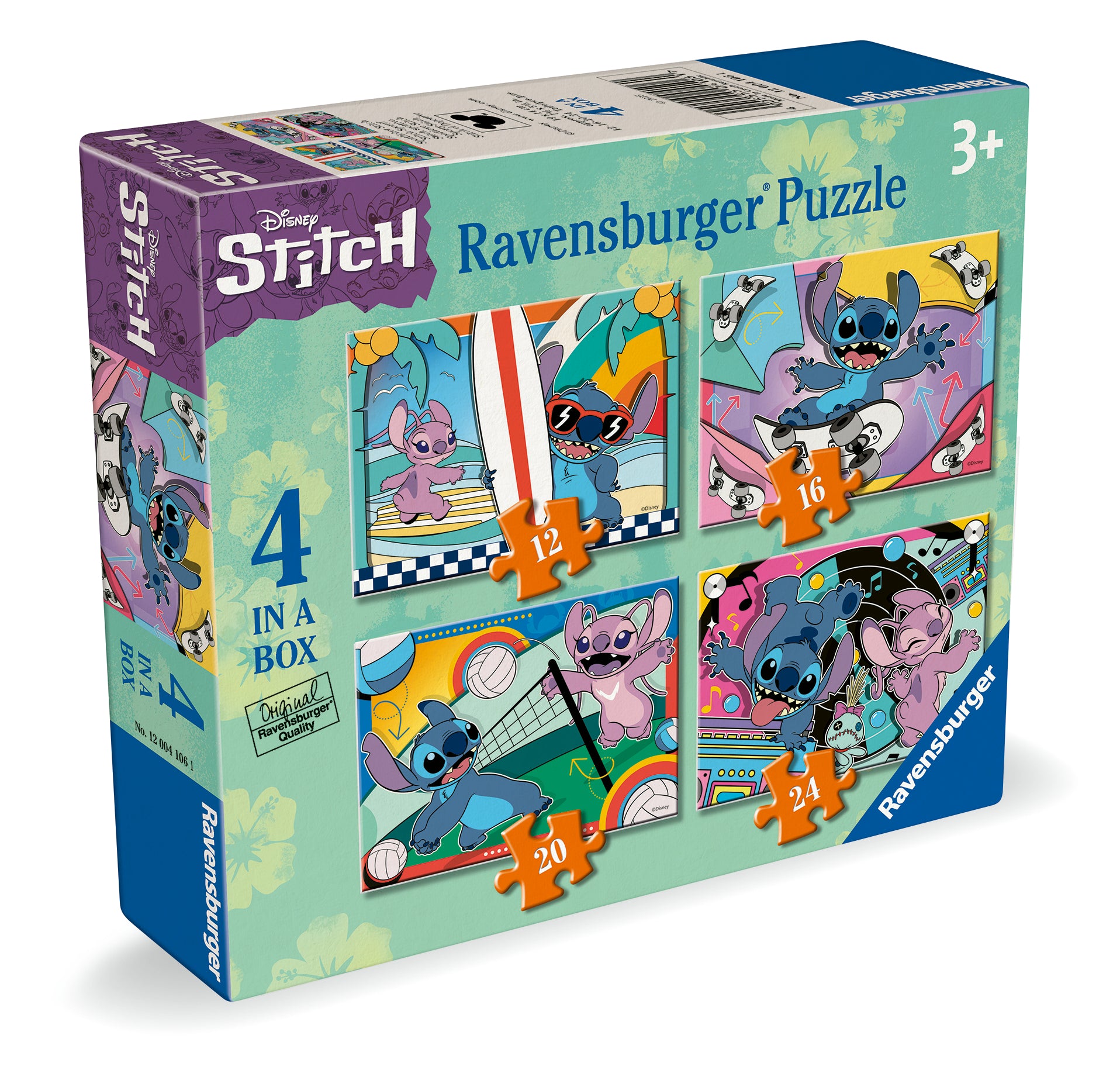 Piece together hours of fun with the Disney Stitch 4 in a Box Jigsaw Puzzles. This set includes 4 different puzzles featuring the beloved and mischievous character, Stitch. From Angel and Stitch jamming out to music, to Stitch skateboarding like a pro! Suitable for ages 3+, making this a great family activity.