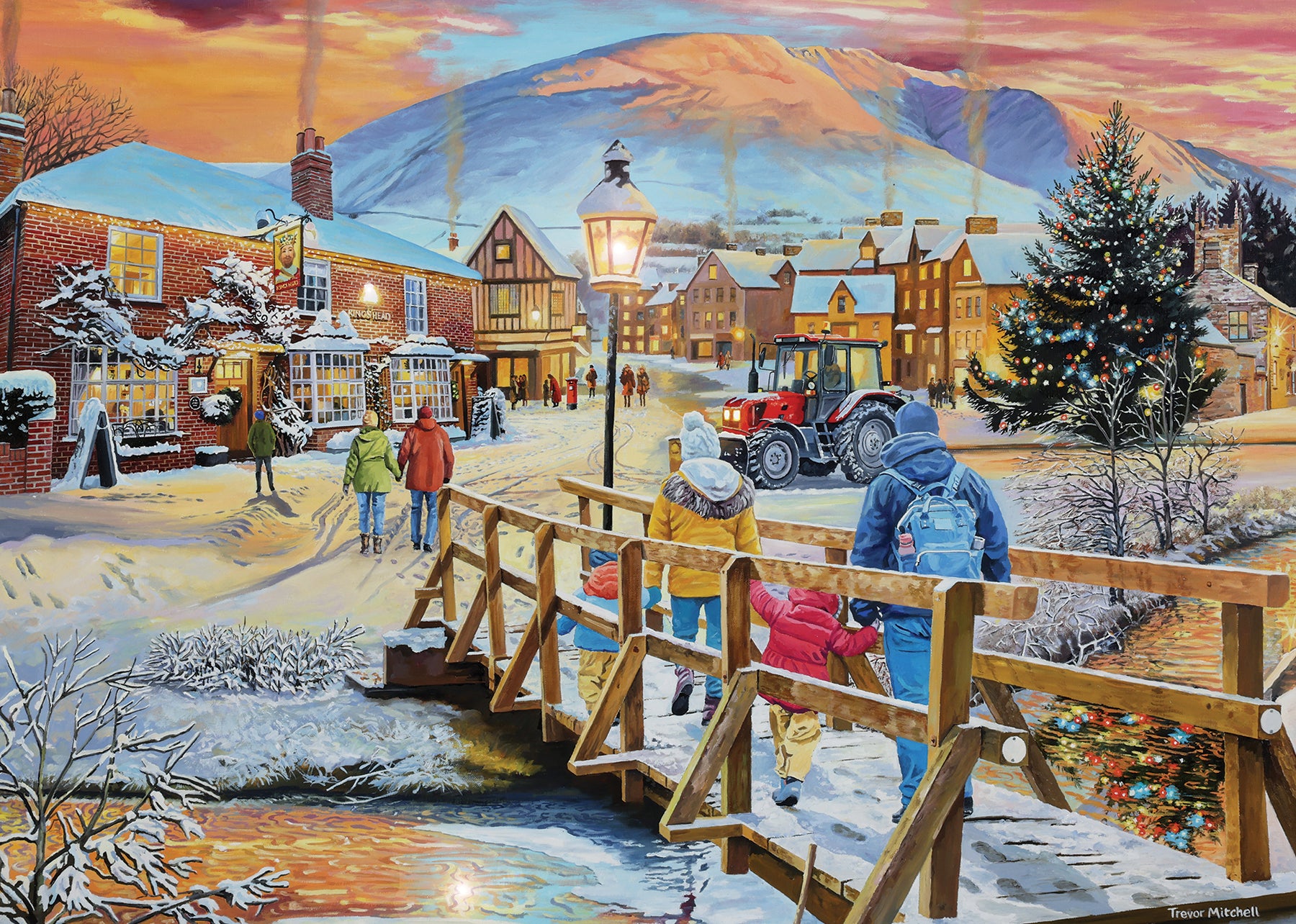 From the glowing pub to the majestic mountain backdrop, every detail brings the magic of the season to life. Spot the tractor, follow the footsteps in the snow, and enjoy the festive charm piece by piece.