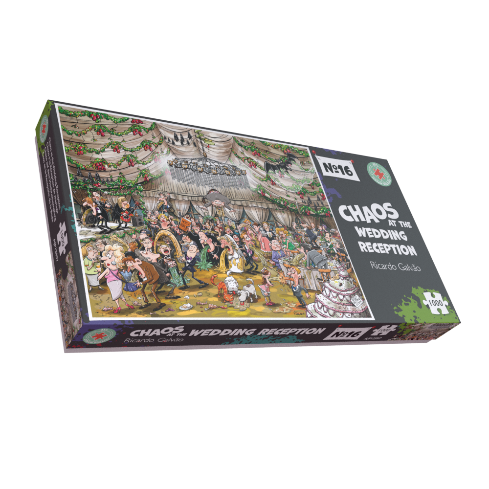 In this hilarious and wacky Chaos jigsaw puzzle, we see a busy wedding reception, but something has gone horribly wrong.