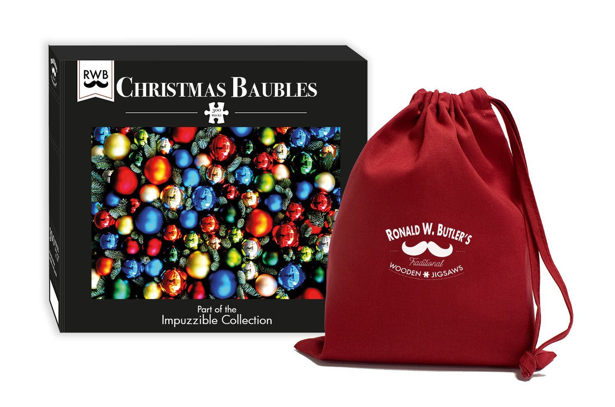 Christmas Baubles Impuzzible is an almost impossible 300 Piece Wooden Jigsaw Puzzle.