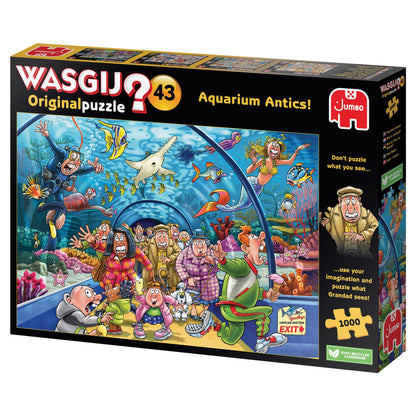 Dive into the depths of fun with the Wasgij Original 43 Aquarium Antics 1000 Piece Jigsaw Puzzle!