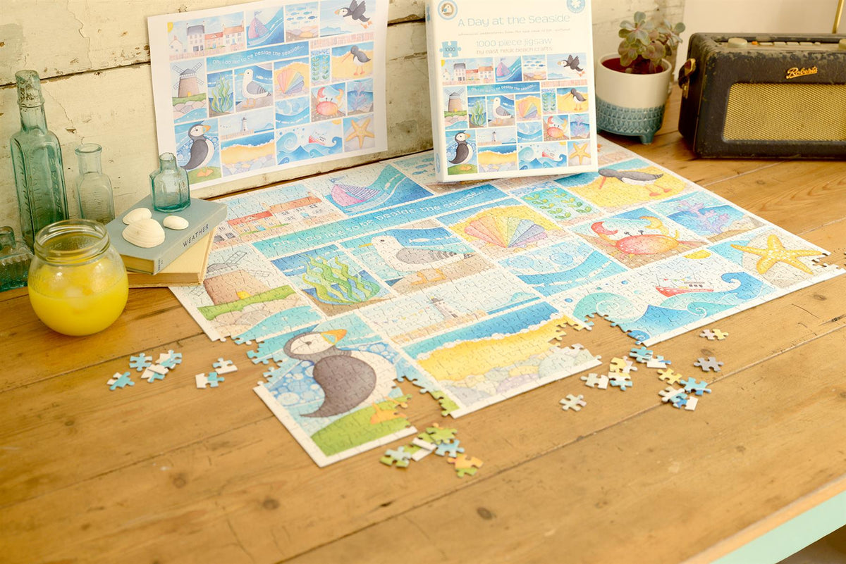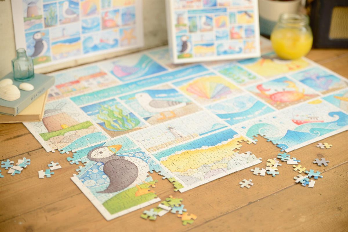 Découvrez les images et les sons apaisants du bord de mer en assemblant ce superbe puzzle « Une journée au bord de mer de 1000 pièces » de Louise Stocker.