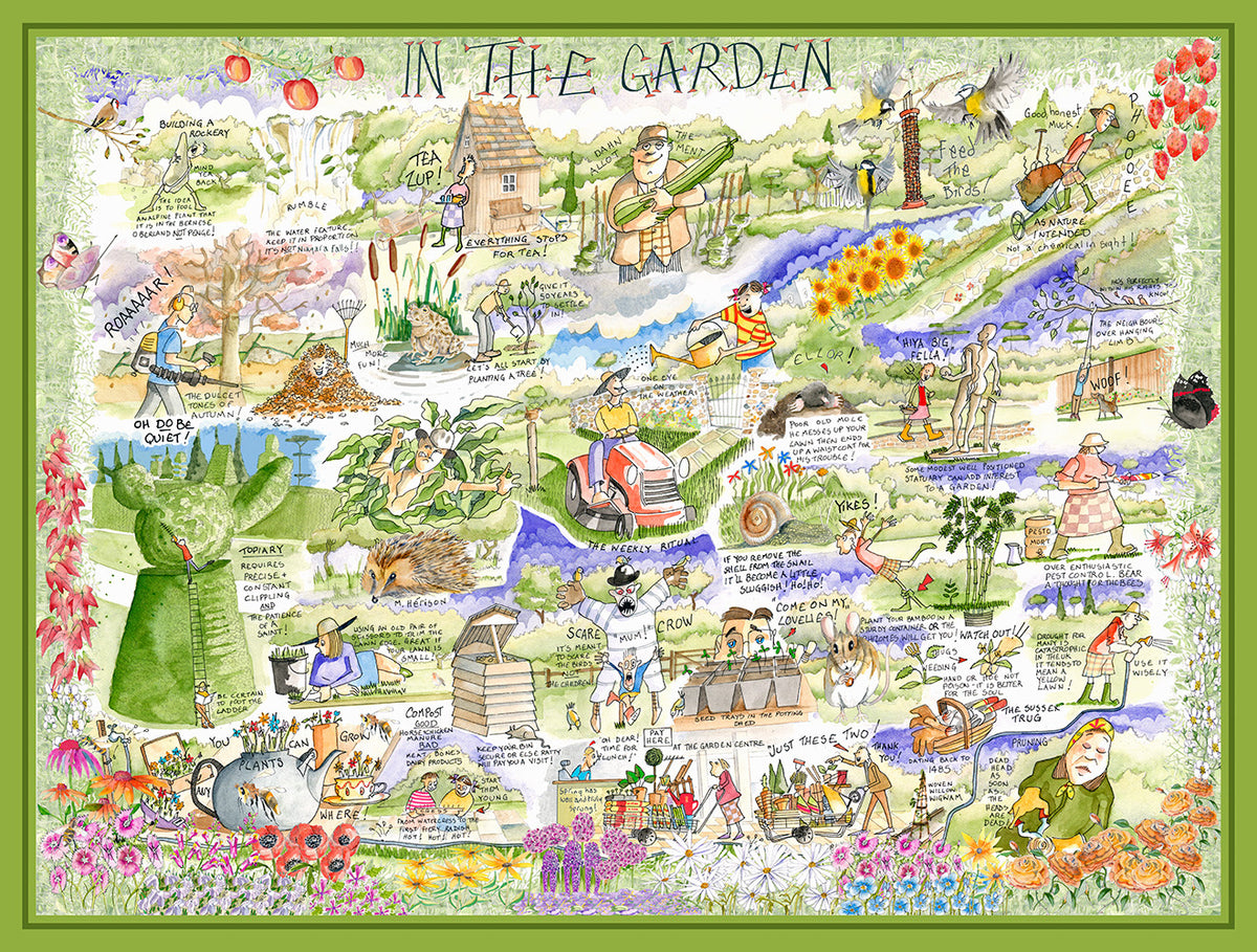 Avoir la main verte n'a jamais été aussi amusant que dans « Au jardin » de Tim Bulmer ! Ce charmant puzzle regorge d'astuces pratiques pour faire de votre jardin un lieu de rêve pour vos voisins, comme « étêter les tiges fanées dès qu'elles sont fanées » et planter le bambou dans un pot pour éviter qu'il ne se propage. Le tout est agrémenté des illustrations délicieusement espiègles de Tim. Alors, pourquoi ne pas vous installer confortablement et vous détendre avec ce joyeux puzzle sur le thème du jardin ?