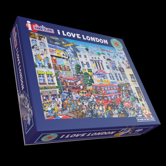 Si vous êtes fan de la folie et de l'espièglerie de Mike Jupp, vous adorerez ses nouvelles gammes de puzzles chez All Jigsaw Puzzles. Nous proposons désormais sa célèbre gamme « I Love », notamment son dernier modèle, I Love GB Too, soigneusement revisité grâce à des images de synthèse et un crayon, 20 ans plus tard !