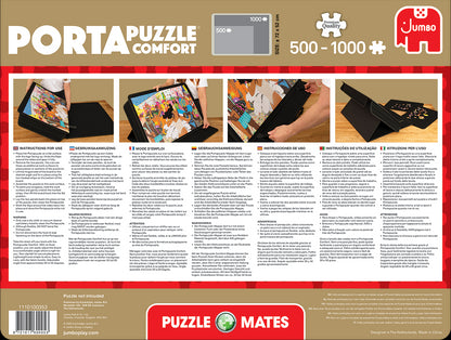 Le Portapuzzle Comfort convient aux puzzles de 500 à 1000 pièces. - Matériau antidérapant pour une meilleure adhérence. - Léger et facile à ranger. - Facile à transporter grâce à la poignée en tissu. - Angle réglable d'environ 30 à 50 degrés.