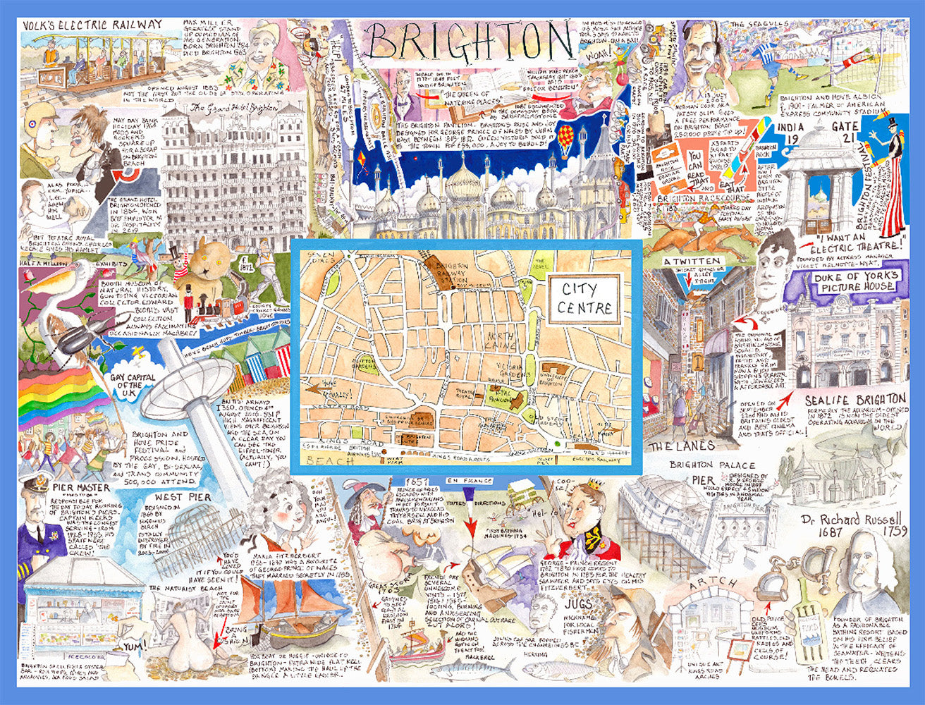 Vous trouverez une sélection hilarante de faits dans cette carte comique de Brighton !