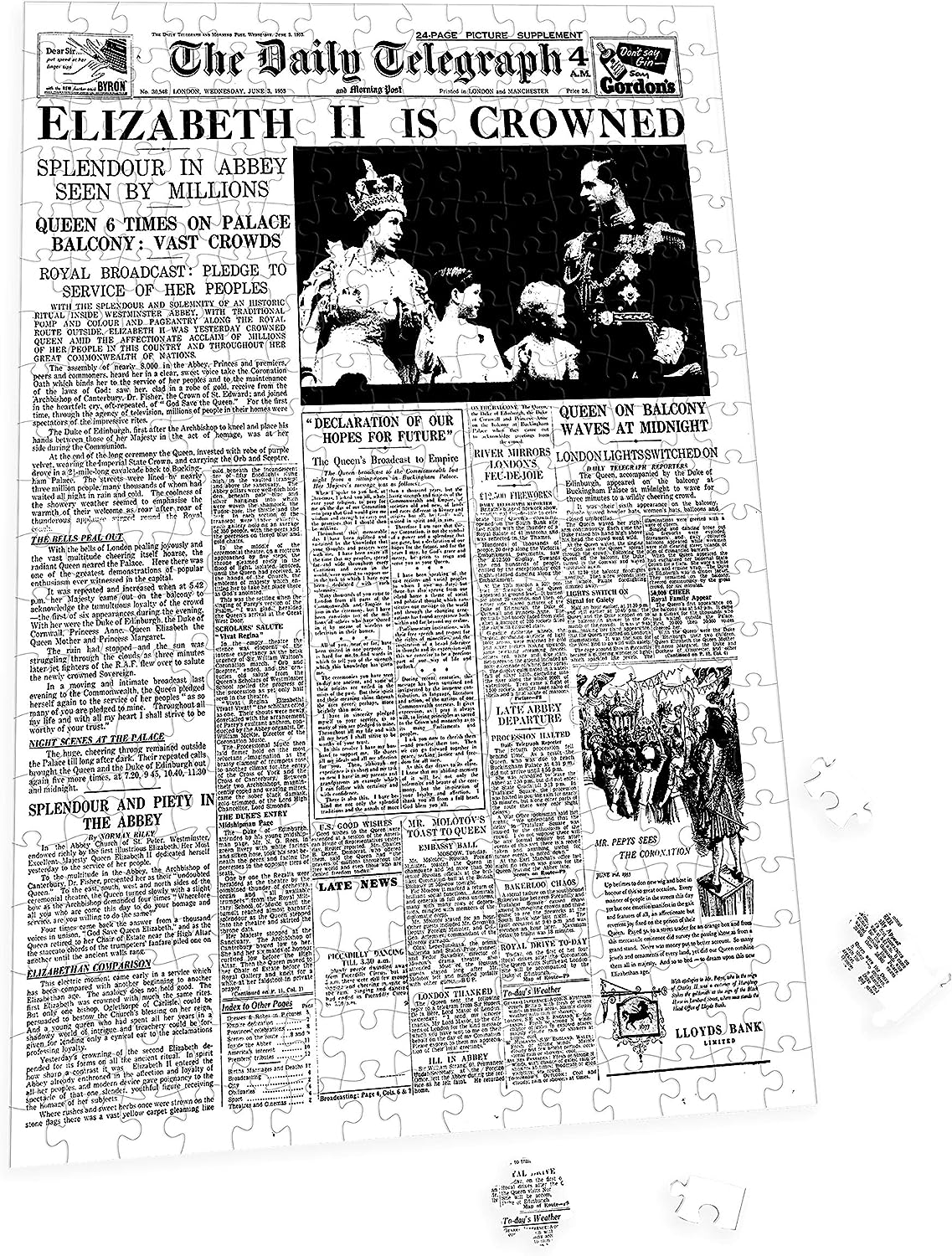 Celebrate a date in history with this personalised jigsaw puzzle featuring the front page of The Telegraph newspaper on a date of your choice as early as 1855 up to 2016.