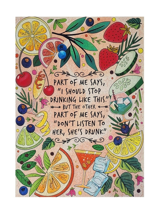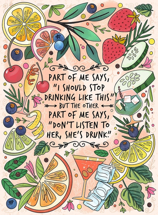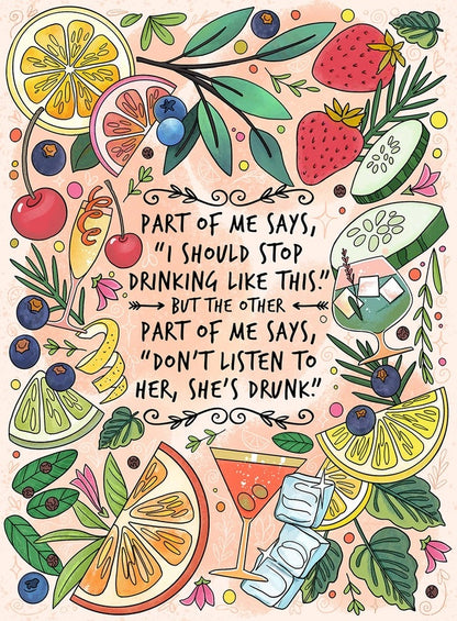 This bold and cheeky 1000 piece puzzle is perfect for anyone who enjoys a cocktail (or two) and isn’t afraid to laugh at themselves. Surrounded by colourful fruit and beautifully illustrated drinks, the centrepiece is a quote that captures the internal dialogue we all know too well: