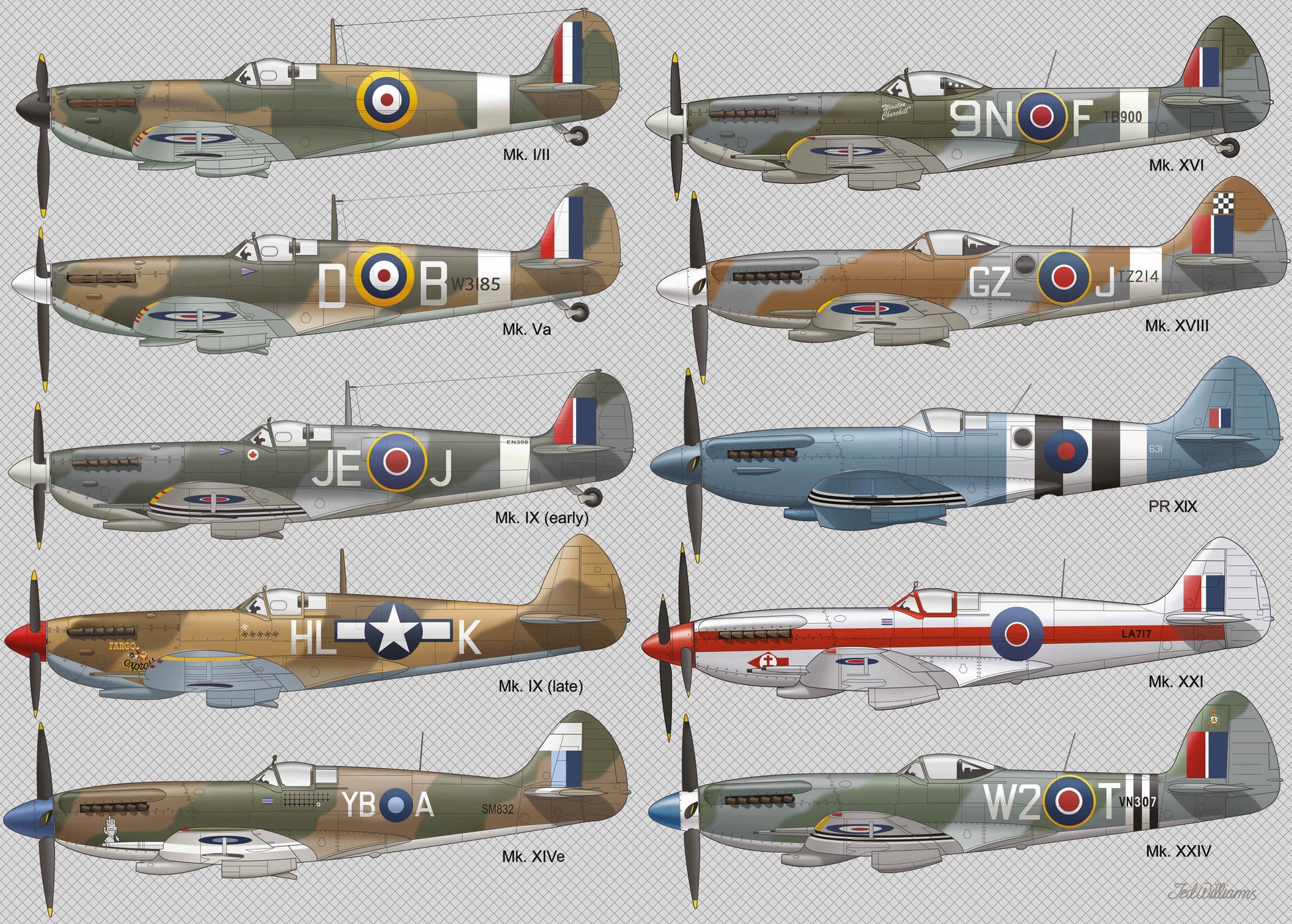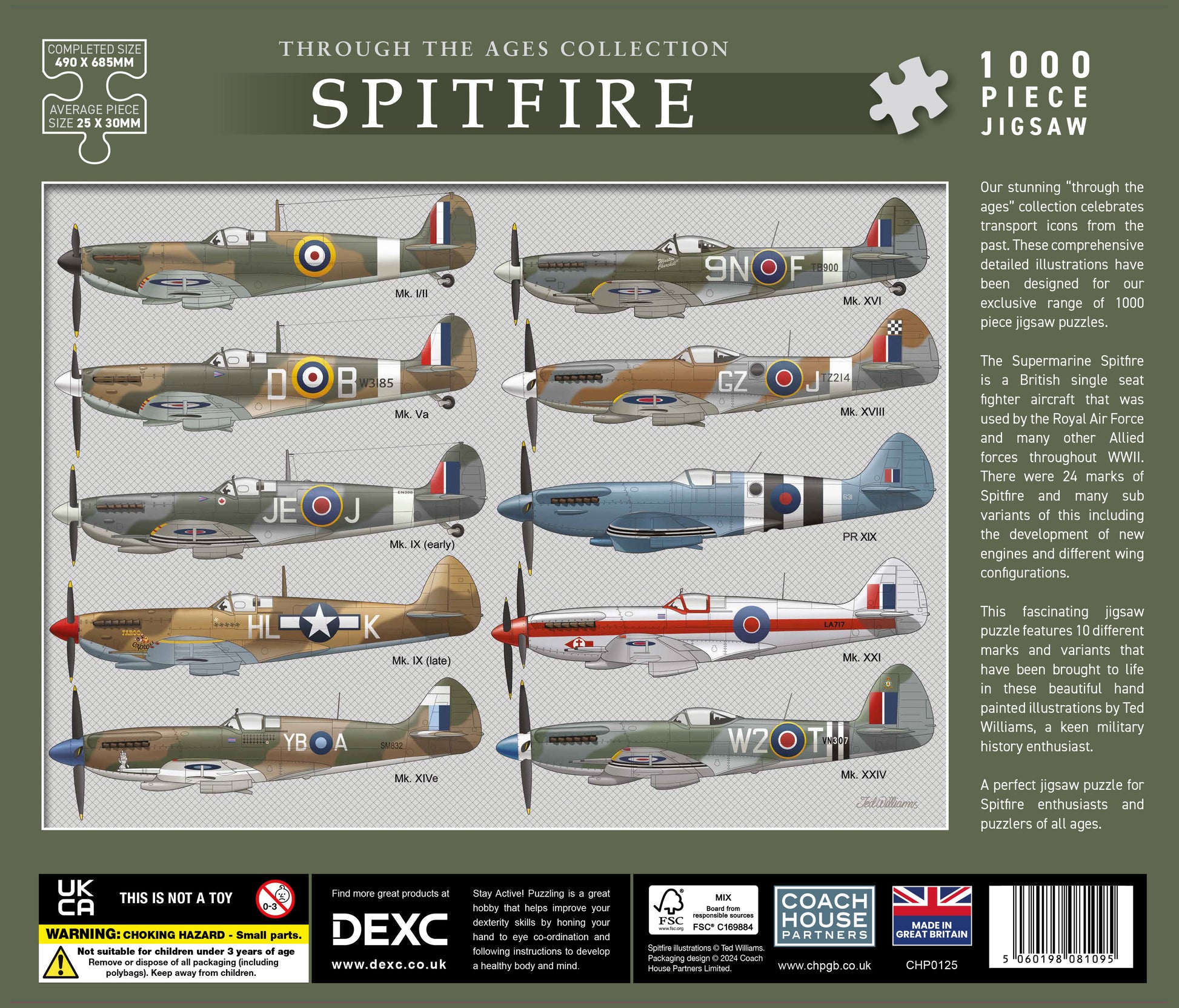 One of the most famous aircraft in history, the Supermarine Spitfire played a vital role in WWII and became a symbol of British resilience and innovation. This beautifully illustrated jigsaw puzzle features 10 different marks and variants of the Spitfire, each one hand painted by military history enthusiast Ted Williams.