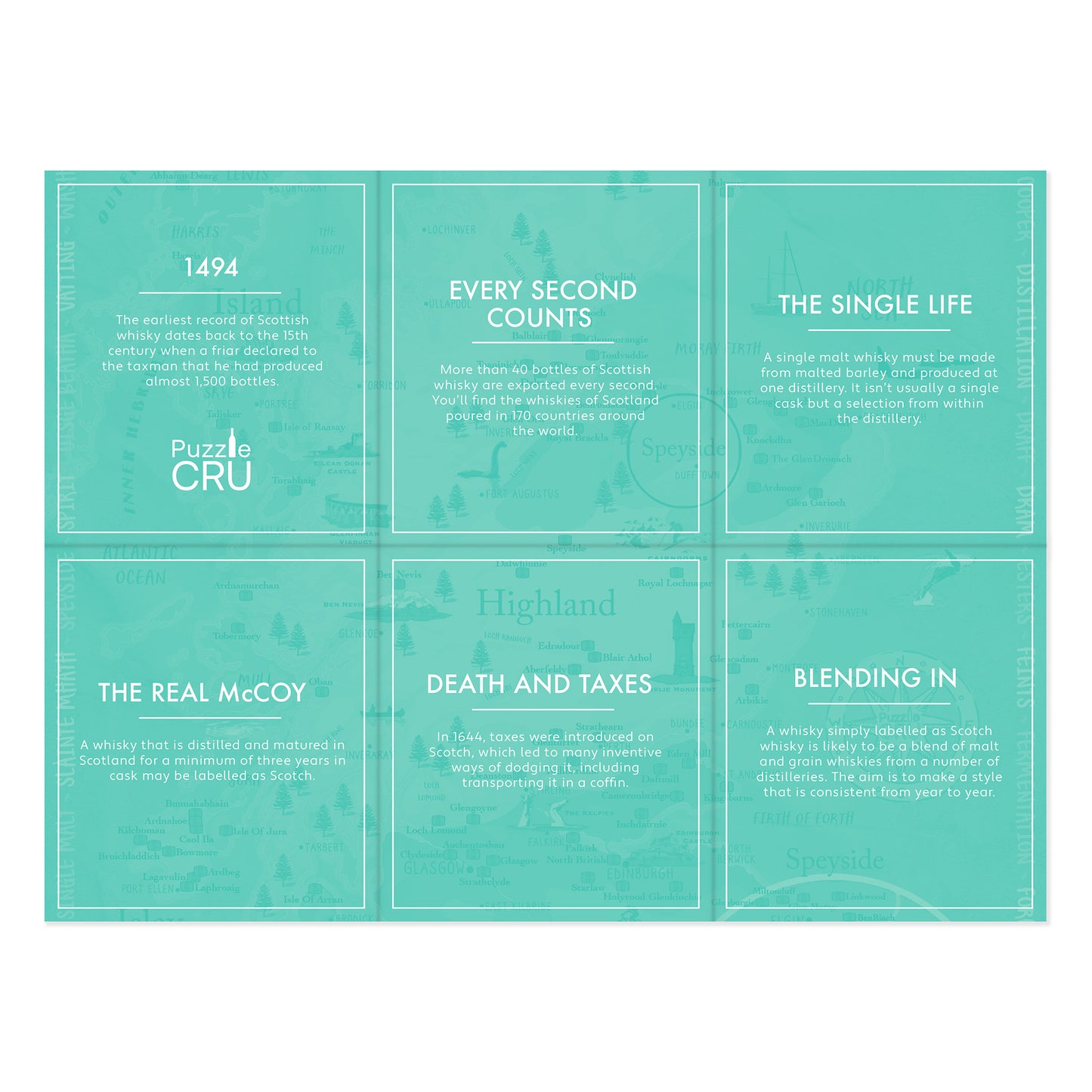 As you piece together the map, you’ll journey through centuries of distilling tradition, discovering legendary distilleries, flavour profiles, and the unique character of each whisky-producing area - from the Highlands to the Lowlands and beyond.