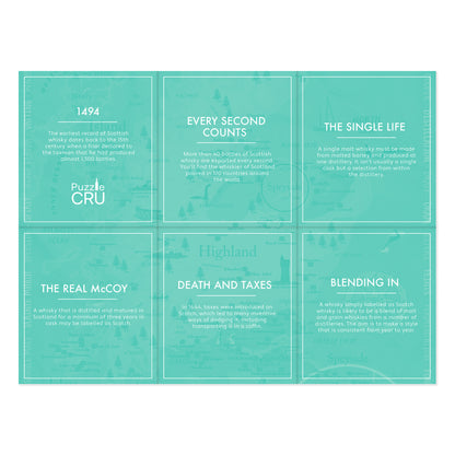 Explore the world of Scotch with this beautifully illustrated 500 piece puzzle, charting Scotland’s most iconic whisky regions - from the smoky malts of Islay to the smooth, honeyed drams of Speyside.